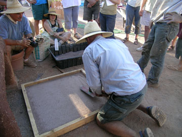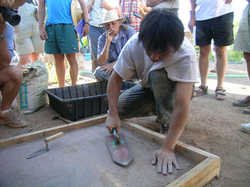 "Violin" Shuhei's artistic talents with Bill's lime+clay mix and Athena's Fresco